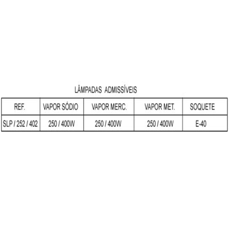 Luminária pública fechada, para fixação em ponta de braço, corpo, aro, tampa e alojamento para equipamento elétrico em liga de alumínio fundido. Fixação por meio de ponta de braço de 0 60,3mm externo. Refletor em alumínio estampado e anodizado, visor plano de vidro temperado.