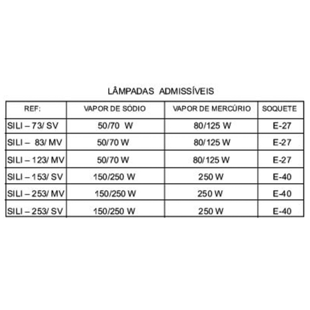 Aparelho para iluminação, fabricado em alumínio fundido, grade reforçada, fixação plafonier, globo de vidro resistente a choque térmico, soquete de porcelana, vedações de borracha resistente ao calor e ao tempo.