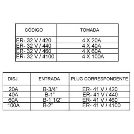 Tomada bloqueada, fabricada em liga de alumínio fundido, equipada com disjuntor trifásico de proteção térmica e magnética de até 100A, 480V.